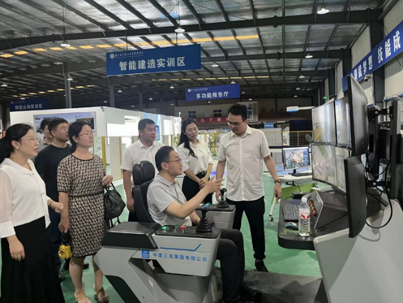 在湖北城市建设职业技术学院副校长易操、建筑工程学院院长文学、副院长胡永骁及相关专业教师的陪同下,陈伟一行先后参观了深基坑实训基地、新质生产力实训基地、机器人实训基地、装配式全产业链实训基地、世赛混凝土与砌筑省级集训基地以及智能建造虚拟仿真实训基地等校内实践教学场所。本次行程重点参观了由湖北城市建设职业技术学院与中国建筑第三工程局共同建设的新质生产力实训中心,详细了解了该中心作为全国首个覆盖设计、生产、施工与运维各环节、聚焦智能建造全生命周期的实训平台的功能与特色。在机器人实训基地,代表团观摩了多类先进机器人系统,包括测绘机器人、喷涂机器人和3D打印建筑机器人等。在智能建造虚拟仿真实训基地,师生体验了数字孪生与虚拟现实(VR)等技术在构建高度仿真工程场景中的应用。