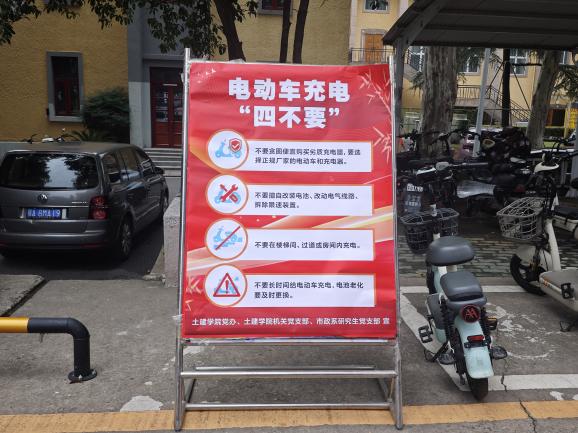 活动伊始,志愿者在西院东教楼前摆放宣传展板,普及电动车充电安全知识,强调“四不要”原则:不购买劣质充电器、不擅自改装电池、不在室内充电、不要长时间充电等。通过图文并茂的宣传和现场讲解,让同学们更加清晰地认识到电动车违规充电的危害,提升了安全防范意识。