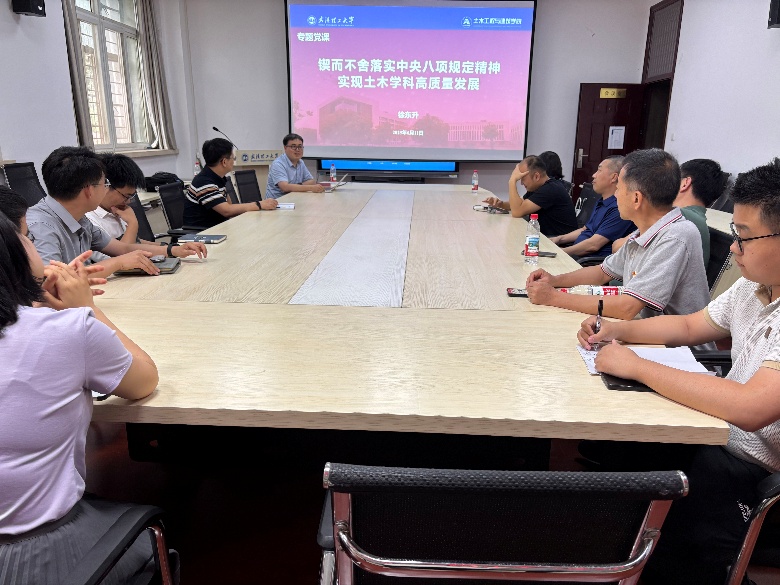6月12日下午,澳门十大网投正规官网平台岩土工程系党支部在学院116会议室开展“锲而不舍落实中央八项规定精神,实现土木学科高质量发展”专题党课。本次党课由支部书记徐东升同志主讲,支部全体成员参加学习。