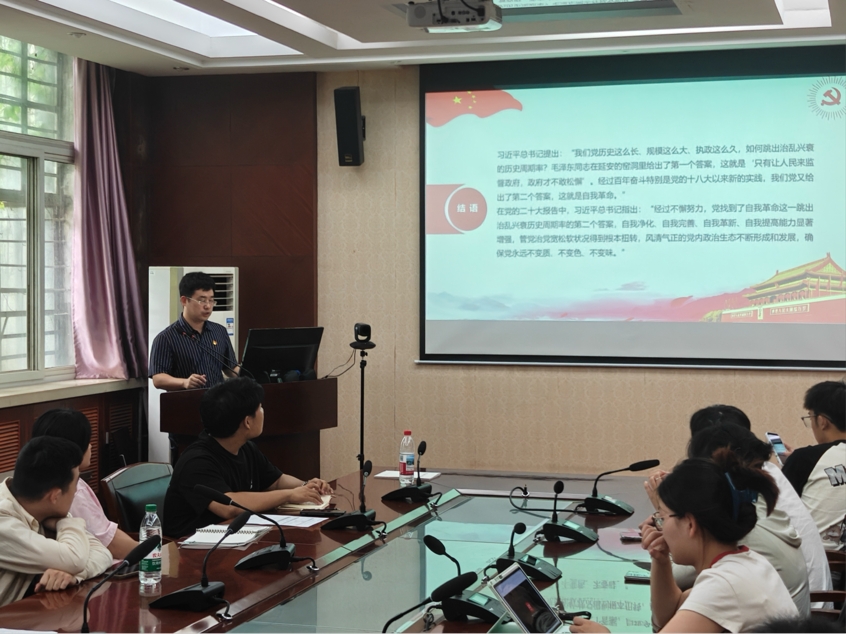6月26日,澳门十大网投正规官网平台研究生结构工程第三党支部与建工系教工党支部联合支举办了一场以“学习中央八项规定精神”为主题的党课活动,徐训同志担任主讲人,支部全体党员及部分积极分子参与学习。徐训老师从中央八项规定精神的重要意义出发,结合历史背景、典型案例和本质内涵,深入浅出地讲解了八项规定精神的核心要义,引导党员们强化纪律意识,筑牢思想防线。