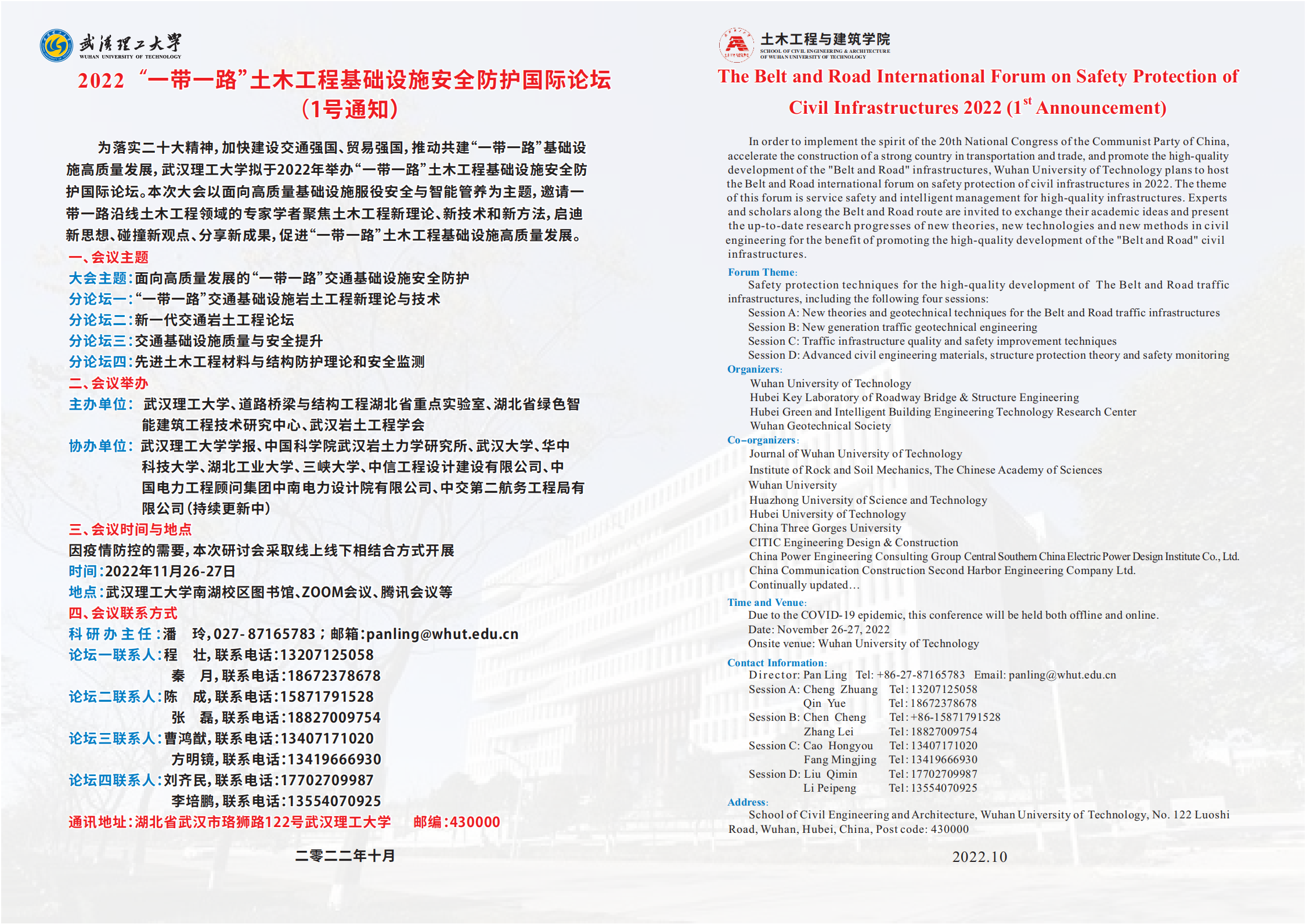 2022“一带一路”土木工程基础设施安全防护国际论坛 (1号通知)