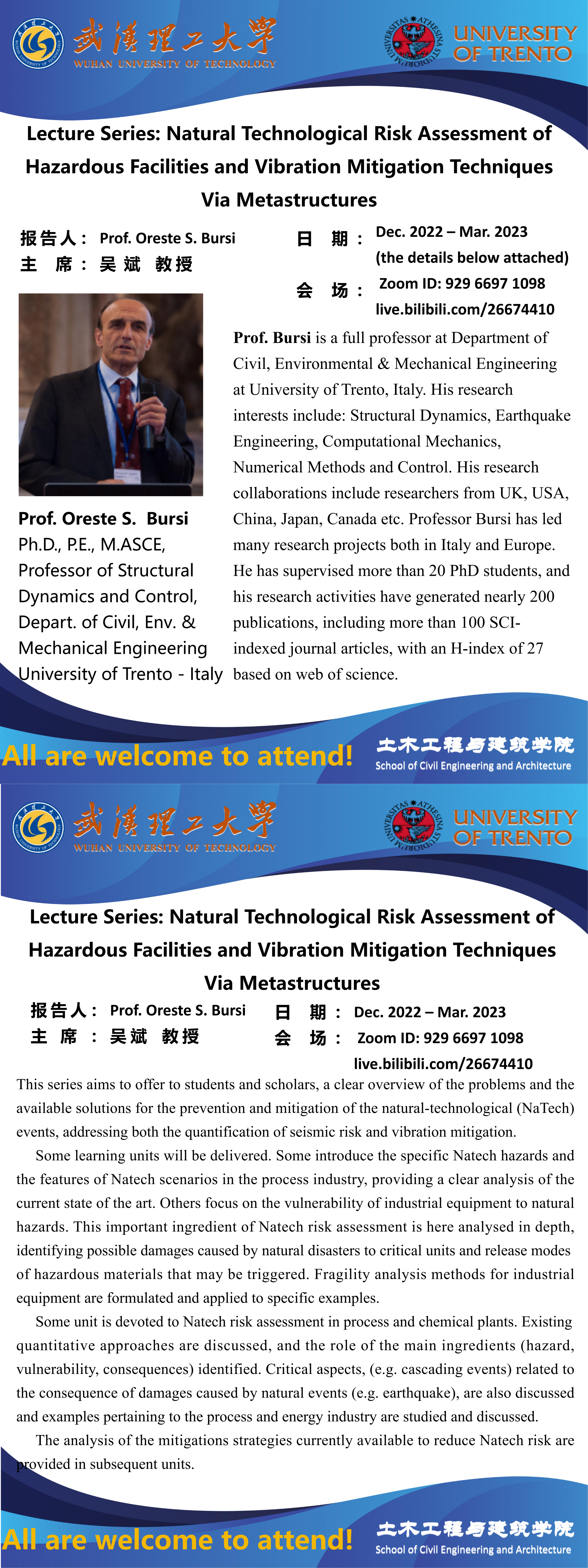 Lecture Series: Natural Technological Risk Assessment of Hazardous Facilities and Vibration Mitigation Techniques Via Metastructures