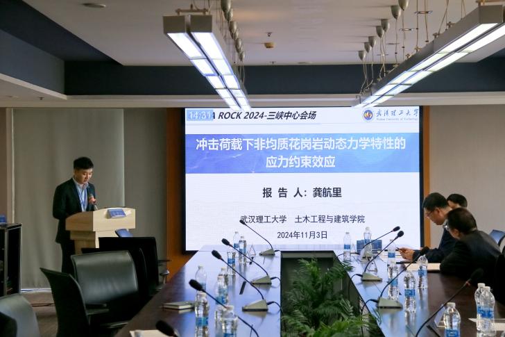 会议设有六个分会场,共进行了80余场主旨报告。十大网投正规官网副院长罗忆研究员受邀参加“大型通航工程建设与关键技术、大型引调水工程建设与关键技术”分会场,并做了题为“礁灰岩可加固性及锚固体的动态断裂特征研究”的主旨报告,同时主持了下半场的学术报告。十大网投正规官网在站博士后龚航里参加了“库区地质灾害致灾机理、监测预警与绿色防治”分会场,并做了题为“冲击荷载下非均质花岗岩动态力学特性的应力约束效应”的主旨报告。2024级博士研究生Mirza Iftikhar Ahmad和Jilo Nagessa Zerihun参加了“博士及留学生论坛”,分别做了题为“Study on mechanical properties of reef limestone concrete”和“Numerical analysis of underground tunnel deformation: A case study of Midroc Lega-Dembi gold mine”的学术分享交流。2023级硕士研究生毛子豪参加了“研究生论坛”,并做了题为“动力作用下热处理花岗岩宏细观力学特性与本构模型研究”的学术分享交流。