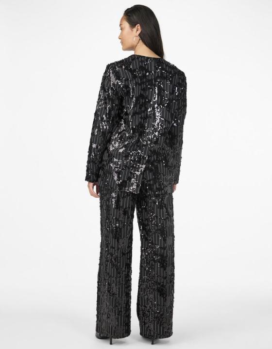 – Nålestripet blazer med paljetter- Del av et matchende sett- Enkeltspent- V-hals- Lange ermer- Innfelte forlommer med klaff- Fôret- Normal passform- Modellen bruker str. M