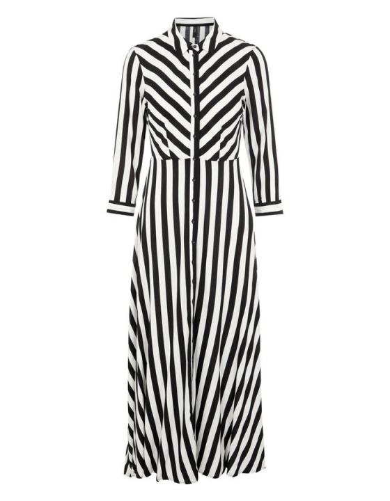 – Spiss krage- Kneppet front- Stripedesign- Normal passformModellen bruker str. SLAGET MED LENZING ECOVERODette produktet er laget av LENZING ECOVERO-merket viskosefiber ved hjelp av tremasse som kommer fra en bærekraftig drevet skog, og er produsert på en måte som reduserer miljøpåvirkning.