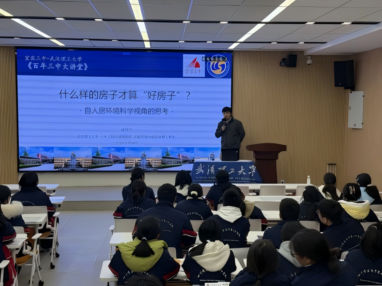 盛绍宇教授以《怎么样的房子才算好房子》为题作科普讲座。他从日常生活切入,深入浅出地讲解好房子的标准,并结合学校在“绿色储能材料”等领域的前沿科研成果,展现了学校服务国家战略的担当作为,激发学生投身科研、矢志报国的热情。