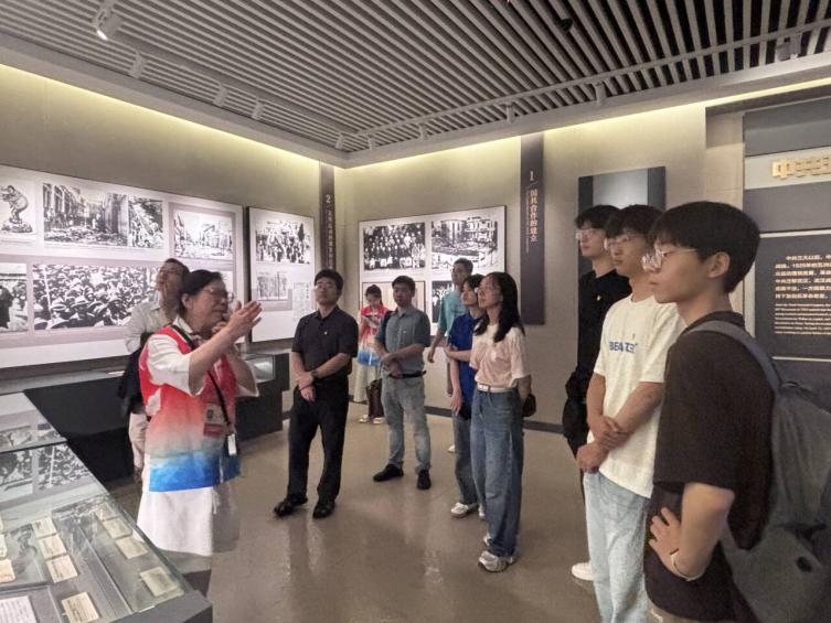 在中共五大会址纪念馆内,师生党员驻足于复原的会场、历史文物和照片前,深入了解会议召开的背景与细节。通过“高潮与危机”“贡献与局限”等专题展区,大家深刻体会到早期中国共产党人在逆境中坚持真理、修正错误、开拓进取的勇气与智慧。师生们还通过现场互动问答等形式,进一步强化了理想信念,激发了立足岗位、勇担重任的责任感。