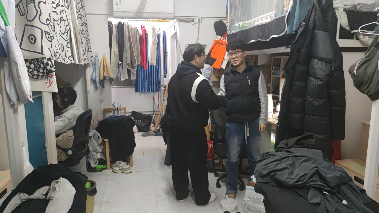 时值冬季,检查过程中,辅导员们不仅关注安全与卫生情况,还亲切询问同学们的保暖情况与过冬需求,细致了解寝室供暖是否充足、是否有需要学院协调解决的御寒物资问题,并提醒大家注意添衣防寒,安全使用取暖设备,传递出学院对学子们的深切关怀。