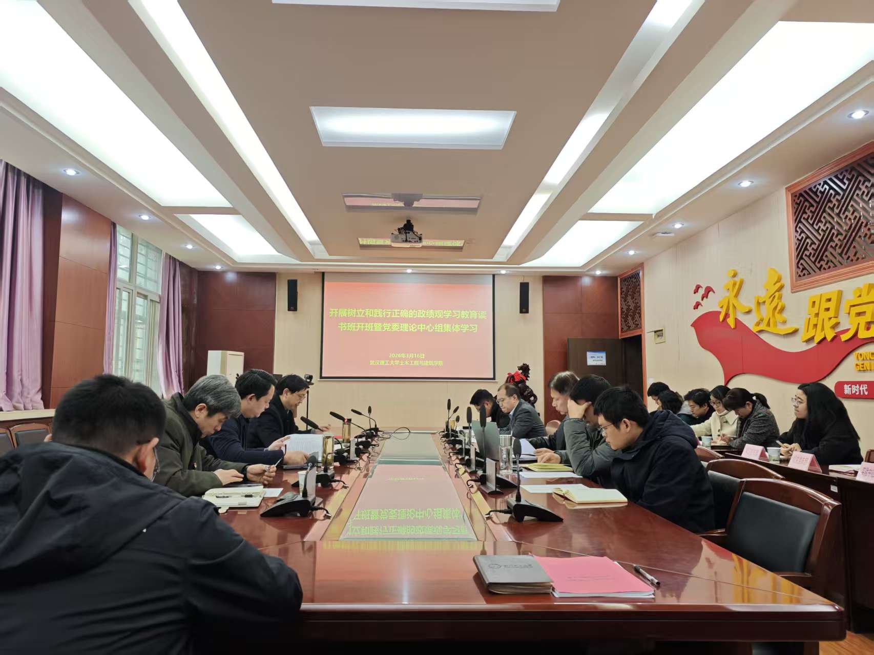 3月16日下午,澳门十大网投正规官网平台党委理论学习中心组开展树立和践行正确政绩观学习教育读书班开班暨党委理论学习中心组集体学习,深入学习领会《习近平关于树立和践行正确政绩观论述摘编》的重点篇目以及《让愿担当、敢担当、善担当蔚然成风》等重要内容。院党委书记林凯主持学习,中心组全体成员参加学习,各教工党支部书记列席会议。